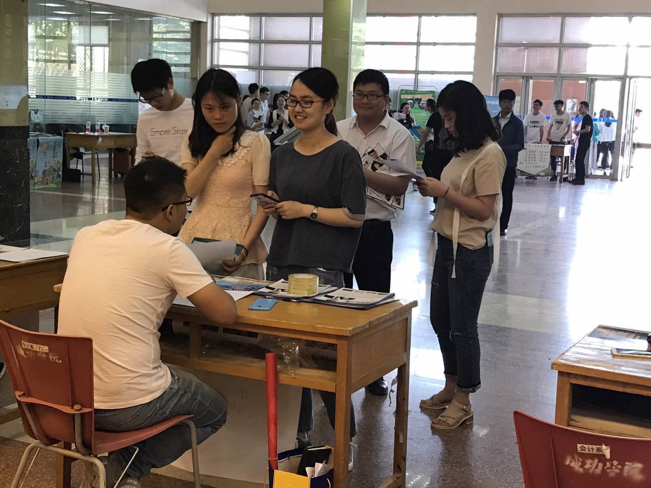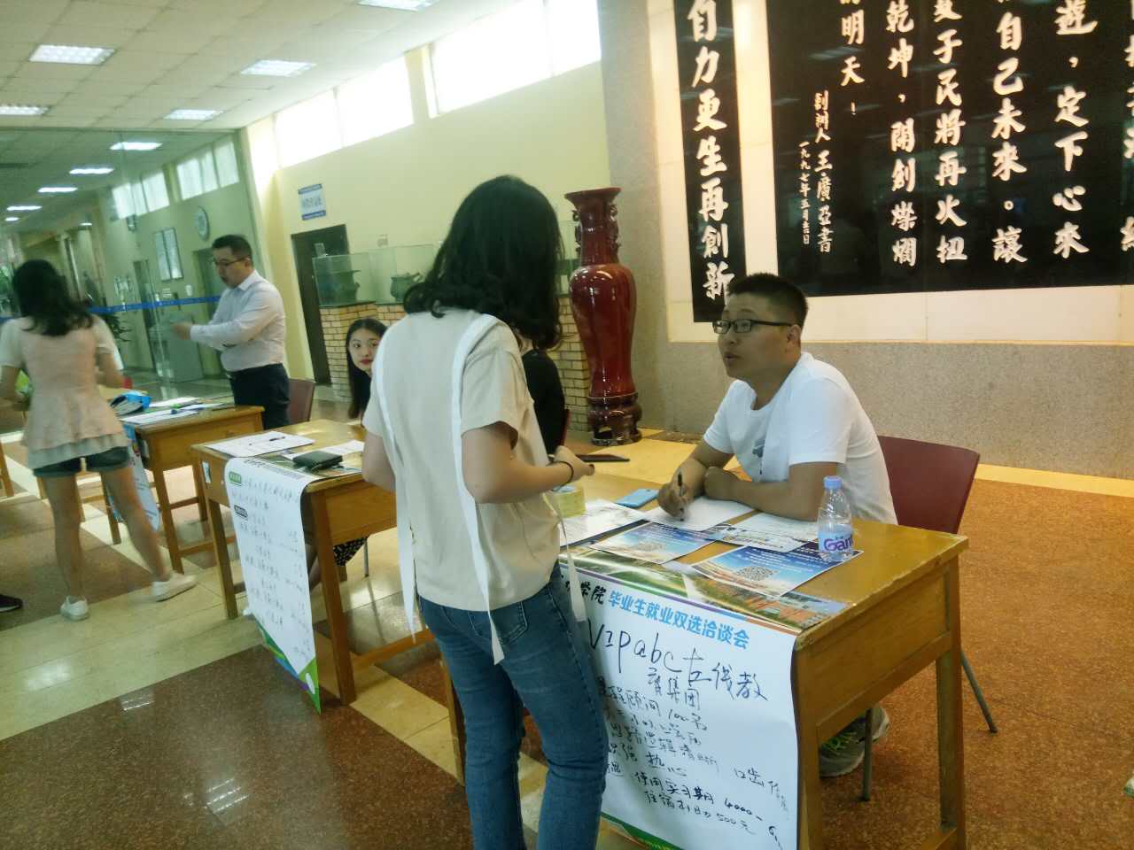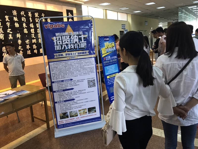 今日,我公司在鄭州市鞏義紫荊路136號的鄭州成功財經(jīng)學(xué)院,為和我公司簽約的著名臺資英語在線培訓(xùn)機構(gòu)vipabc,開展了校園招聘,在鄭州為應(yīng)屆畢業(yè)生提供了北上廣深的機遇,這次招聘取得了不錯的成果,咨詢?nèi)藛T、報名人員源源不斷,同時也得到了院領(lǐng)導(dǎo)的重視。